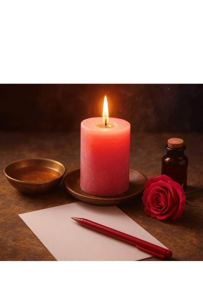 3. Enciende la vela rosa y, mientras su luz brilla, visualiza momentos felices, palabras dulces y un vínculo lleno de calma.